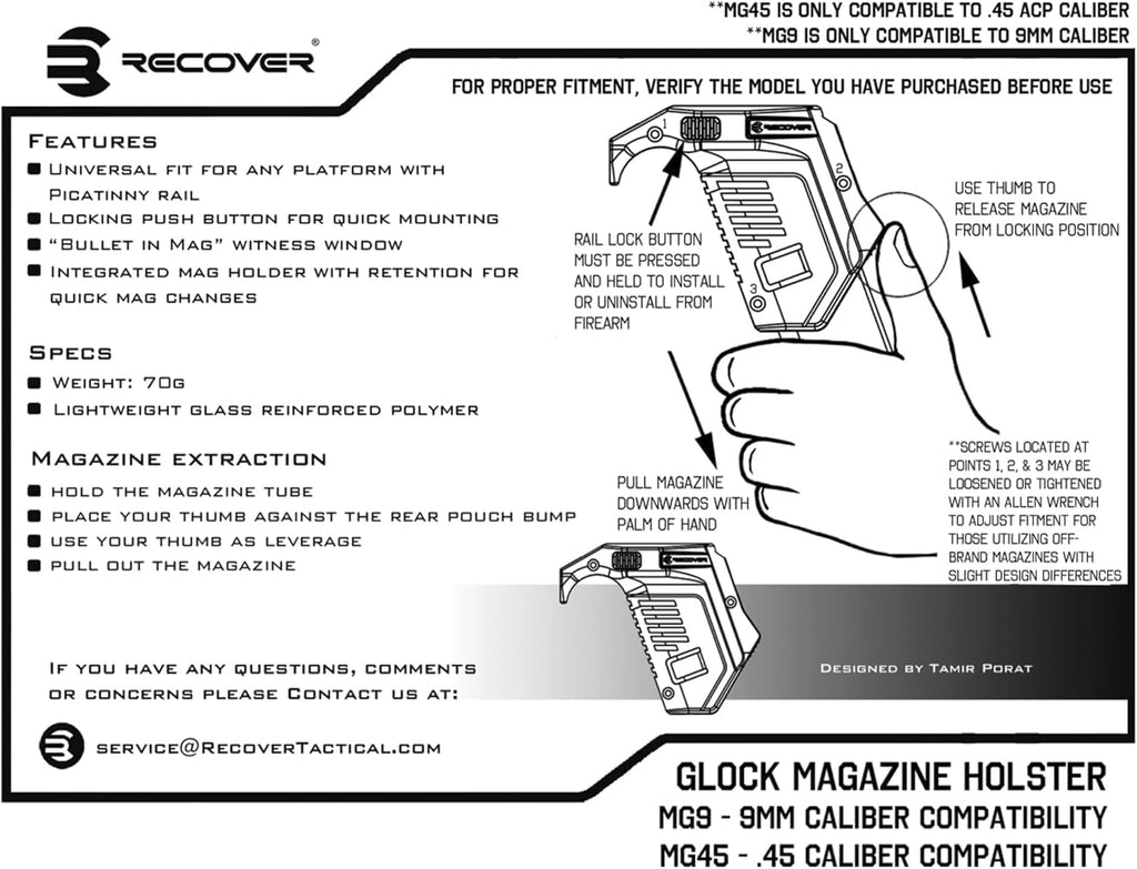 • Recover Tactical MG9 for Glock Models with or without 20/20 stabilizer