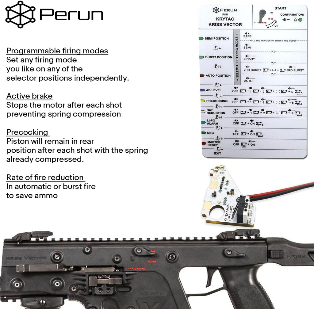 - Perun for Krytac Kriss Vector replaces stock electronics in Kriss Vector airsoft replicas made by Krytac company. It provides lots of additional features providing full control over how your gearbox cycles. *Perun Mosfets Should Be Installed By A Professional.*